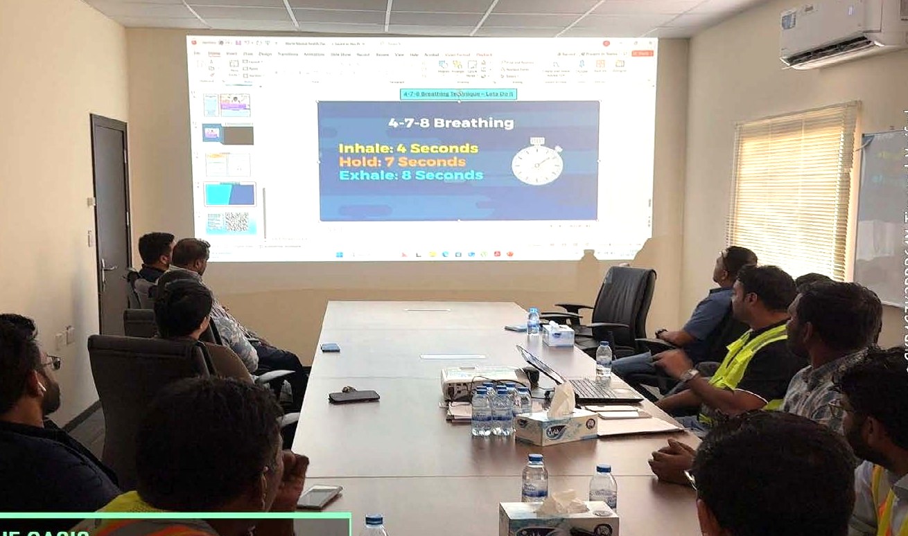 On the occasion of World Mental Health Day (October 10th), Wade Adams organised a series of on-site awareness activities including peer discussions, training sessions including toolbox talks, games , pledges and stress management techniques. A safety moment was widely circulated and communicated regarding the signs of mental health issues and actions including the much popular 4-7-8 breathing technique. These initiatives highlighted the importance of mental well-being in our demanding work environment. Emphasis was made on the fact that mental health is just as vital as physical safety and encouraged open conversations among team members. The activities received strong participation and heartfelt engagement, reinforcing our culture of care, support, and resilience. Attached are select photos capturing moments from project sites and central workshop.